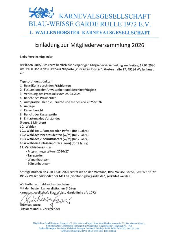 Die Blau-Weisse Garde Rulle 1972 e.V. ist ein traditionsreicher Karnevalsverein, der seit über 50 Jahren